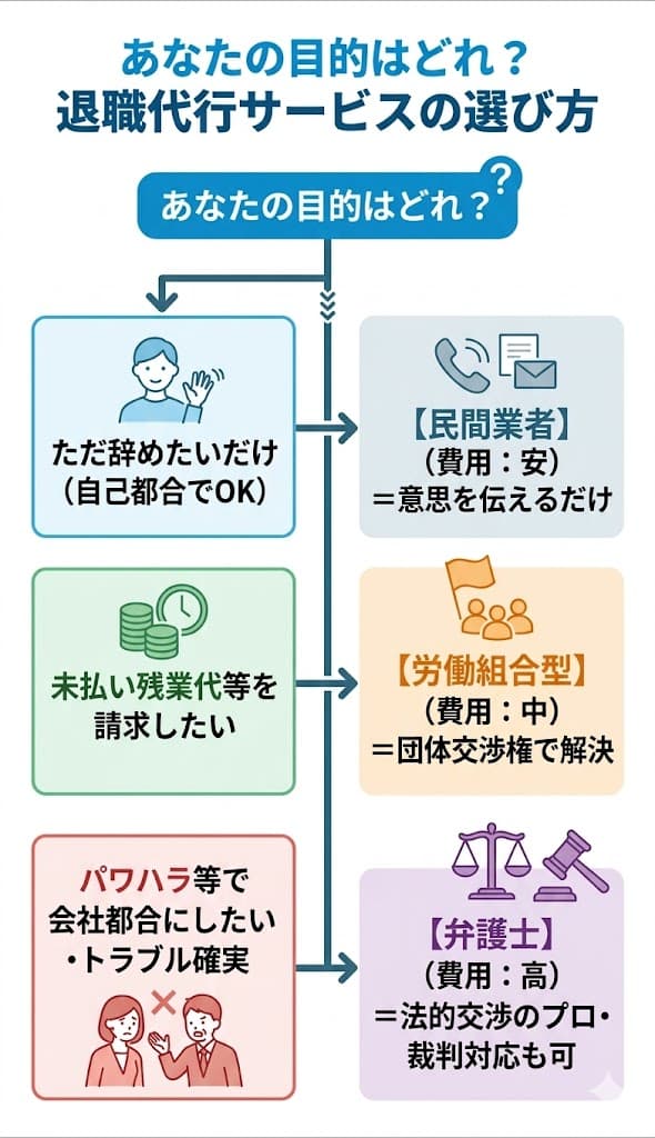 退職代行の種類と「できること」の違い